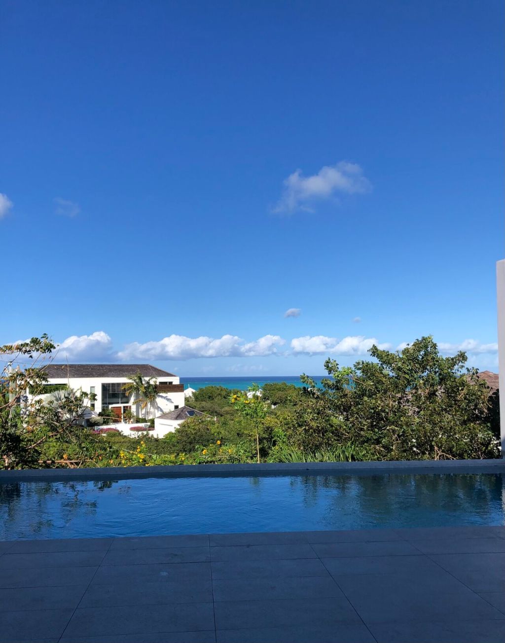— in Turks and Caicos, staring out at cerulean sea & green fruit trees